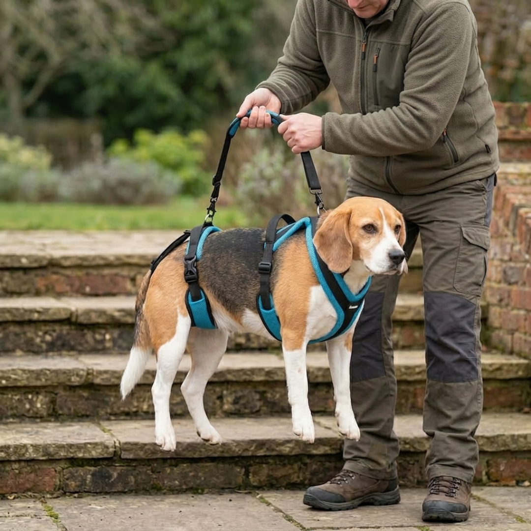 Watching your dog struggle to stand or climb stairs is heartbreaking and physically exhausting. This specialized lifting system provides safe, balanced support to restore their daily independence.